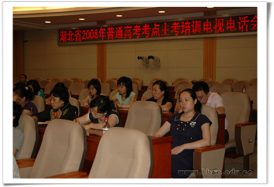 5月20日,我省召開(kāi)2008年普通高考考點(diǎn)主考培訓(xùn)電視電話會(huì)議。大會(huì)由省教育考試院院長(zhǎng)江暢主持,省委高校工委委員、省教育廳黨組成員、省教育考試院黨委書(shū)記徐金山到會(huì)并講話。省教育考試院高考辦主任助理張愛(ài)陽(yáng)對(duì)高考主考工作進(jìn)行了業(yè)務(wù)培訓(xùn)。在主席臺(tái)就座的還有省教育考試院副院長(zhǎng)岳傳林、徐澤貴、胡勝方和高考辦主任吳容靖。省教育考試院干部職工和各市(州)、縣(市、區(qū))教育考試機(jī)構(gòu)負(fù)責(zé)人、考點(diǎn)主考分別在武漢主會(huì)場(chǎng)和當(dāng)?shù)胤謺?huì)場(chǎng)出席。