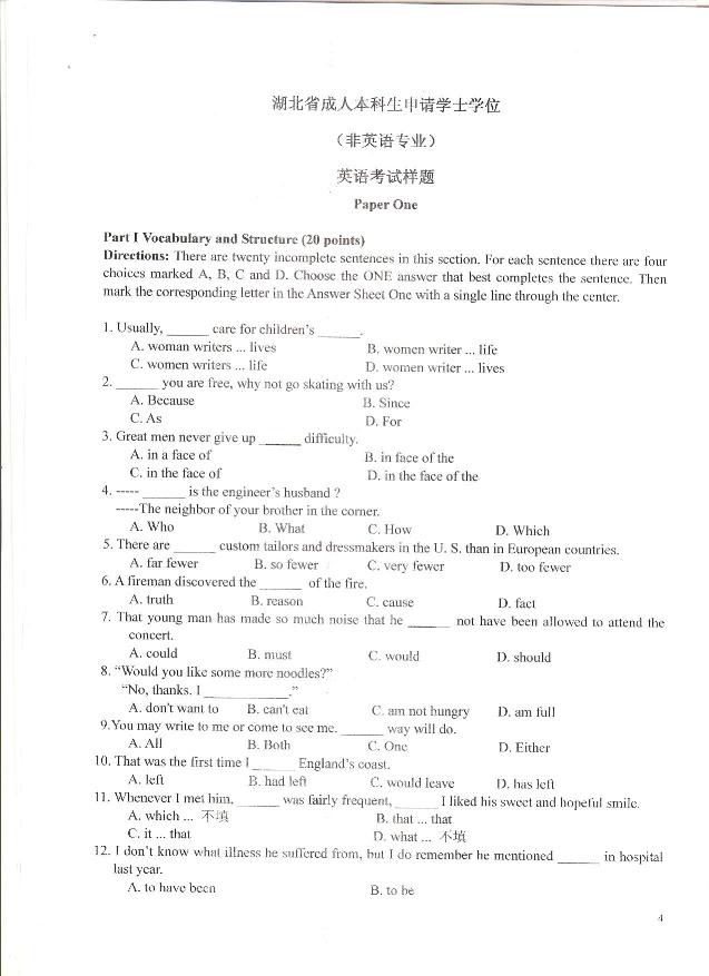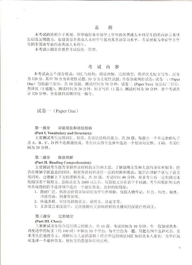 湖北省成人本科生申請(qǐng)學(xué)士學(xué)位英語(yǔ)考試大綱(非英語(yǔ)專業(yè))