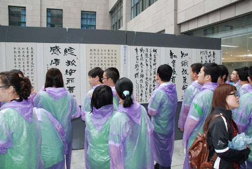 在隆重而簡樸的開幕儀式后,與會(huì)人員還參觀了自考生藝術(shù)作品展。作為湖北省級自考生藝術(shù)作品展,入選的作品都體現(xiàn)了相當(dāng)?shù)奶剿餍院蛯?shí)驗(yàn)性,并在一定程度反映了自考學(xué)員多才多藝的特點(diǎn)。參展作品種類齊全,題材內(nèi)容豐富,表現(xiàn)形式多樣,包括書法、繪畫、攝影及設(shè)計(jì)類等作品。