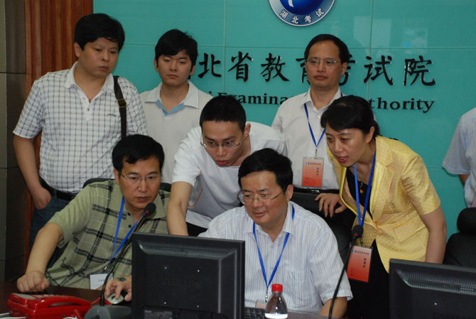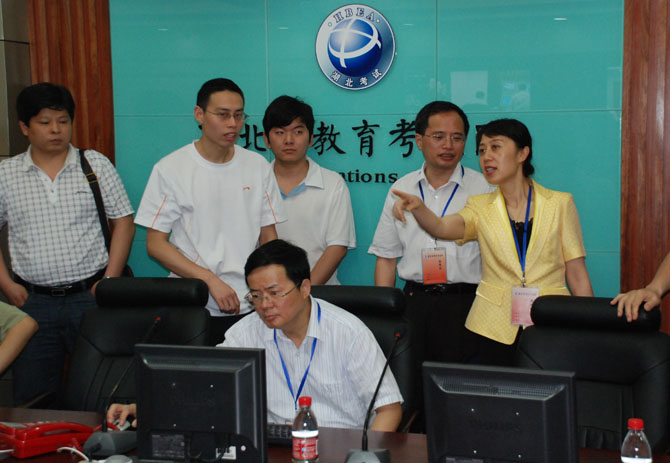 郭省長一行先后來到武漢市第十五中學(xué)、水果湖中學(xué)高考考點(diǎn)進(jìn)行視察。郭省長充分肯定了武漢市在高考安檢、考場監(jiān)控等方面的做法,積累了許多先進(jìn)的經(jīng)驗(yàn)。他要求,全省各級(jí)政府部門和考點(diǎn)采取有力措施保障高考安全,創(chuàng)造良好的考試環(huán)境,做好考生的服務(wù)工作,確保今年高考工作的安全平穩(wěn)。隨后,郭省長來到省教育考試院高考總值班室,向工作人員詳細(xì)了解了全省高考的進(jìn)行情況,并通過考場監(jiān)控視頻視察了考場和試卷保管情況。他指出,高考工作關(guān)系重大,全體高考工作人員身上的責(zé)任也很重,切不可掉以輕心,一定要做好各項(xiàng)準(zhǔn)備,確保高考萬無一失。