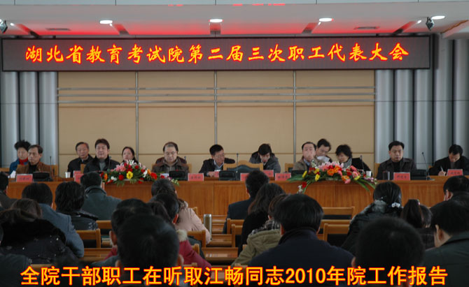 2011年1月25日,湖北省教育考試院召開第二屆三次職工代表大會。院黨委書記、院長江暢,副院長岳傳林,徐澤貴,胡勝方,紀委書記、工會主席鄧道玉,院長助理劉曉林出席了大會。徐澤貴同志主持會議,全院干部職工參加會議。