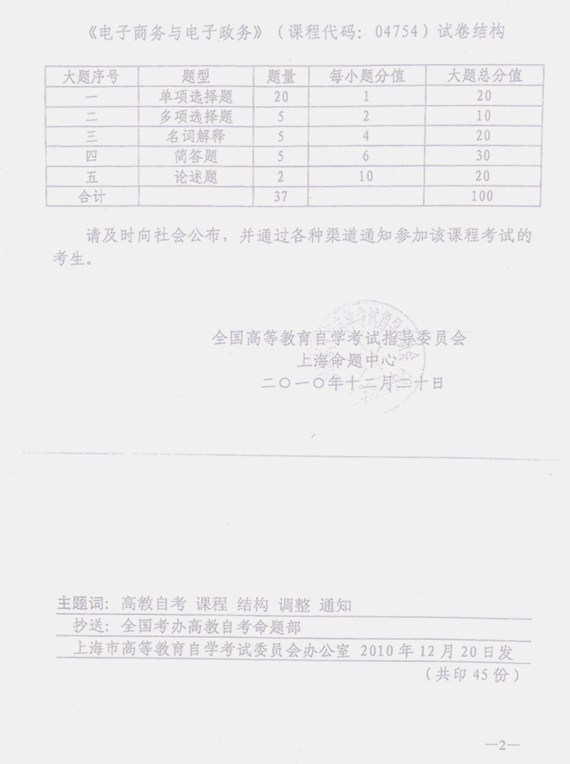 和《電子商務(wù)與電子政務(wù)》試卷結(jié)構(gòu)的通知