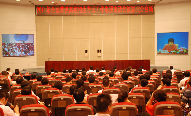 5月9日,2011年全國普通高校招生考試工作電視電話會議召開,會議在北京設主會場,我省設立湖北分會場。副省長郭生練、省政府副秘書長黃國雄出席會議,省教育廳、省委宣傳部、省公安廳等國家教育統(tǒng)一考試廳際聯(lián)席會議成員單位及省教育考試院、省招辦有關(guān)負責同志與會,在漢高校主管招生工作的校領(lǐng)導及招辦主任等參加會議。省內(nèi)各市、縣(區(qū))設立分會場,相關(guān)同志在分會場參加會議。