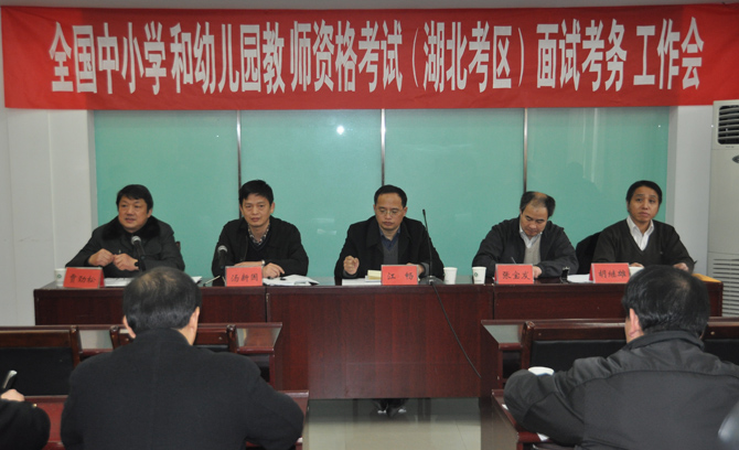 12月22日,全國中小學(xué)和幼兒園教師資格考試(湖北考區(qū))面試考務(wù)工作會在漢召開。教育部考試中心湯新國副處長,張寶發(fā)副處長,湖北省教育考試院院長江暢,綜合考試辦公室主任賈勁松等出席會議。會議由賈勁松同志主持。