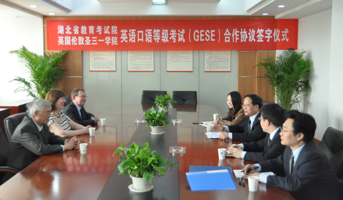 2012年4月27日上午,湖北省教育考試院與英國倫敦圣三一學(xué)院在漢舉行國際英語口語等級考試(GESE)進(jìn)一步合作協(xié)議簽字儀式。