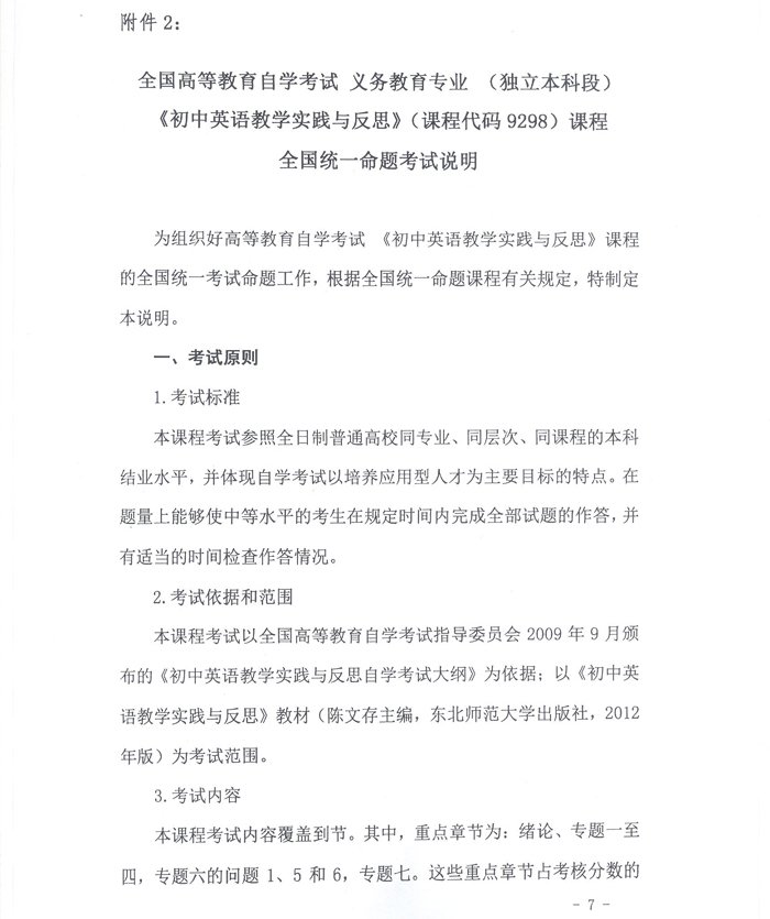 關(guān)于印發(fā)全國(guó)統(tǒng)考09295、09298命題說(shuō)明的通知
