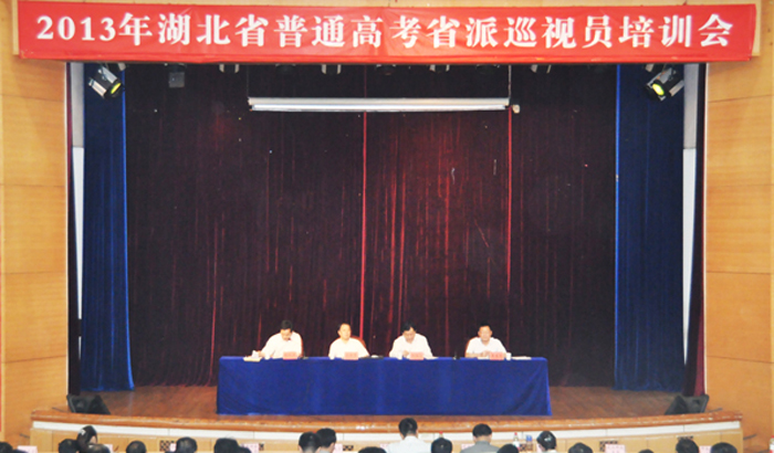 5月29日, 2013年湖北省普通高考省派巡視員培訓會在湖北大學學術報告廳舉行。省教育廳副廳長徐雁冰出席會議并作重要講話,省教育考試院副院長徐澤貴、黃恩育,高考辦主任胡向東等出席會議,會議由黃恩育主持。