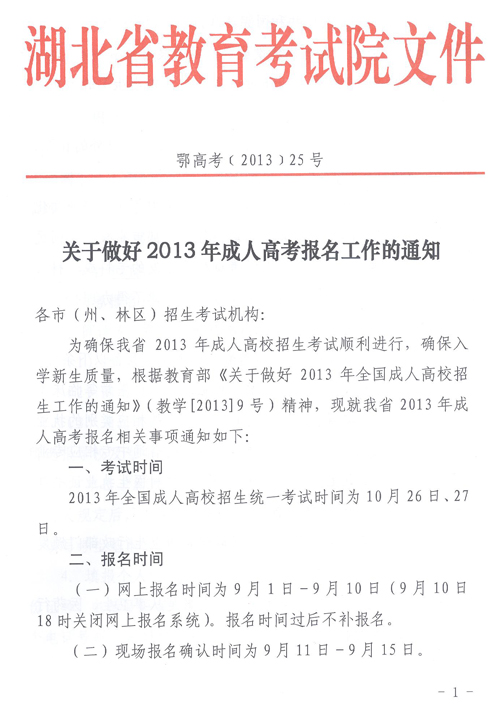 關(guān)于做好2013年成人高考報(bào)名工作的通知