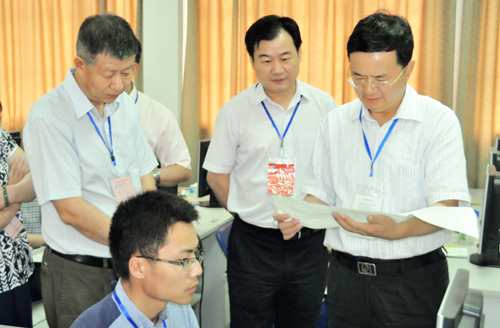 在評卷點(diǎn),郭生練一行實(shí)地察看了評卷現(xiàn)場,認(rèn)真聽取了評卷學(xué)科組工作情況匯報(bào),詢問了評卷工作流程和管理要求,并到中心機(jī)房了解評卷工作進(jìn)展情況。郭生練對評卷教師和工作人員一絲不茍的工作精神表示敬意和謝意。他強(qiáng)調(diào),評卷工作責(zé)任重大,使命光榮,評卷高校務(wù)必要做好后勤服務(wù),提供優(yōu)良的住宿、餐飲條件和工作環(huán)境,保證評卷工作人員以飽滿的精神狀態(tài),高質(zhì)量完成高考評卷任務(wù)。他要求,評卷工作人員要以高度的政治責(zé)任感對待評卷工作,科學(xué)嚴(yán)格地掌握標(biāo)準(zhǔn),客觀公正地做出評判,確保評卷安全和質(zhì)量,向全省人民和廣大考生交出一份滿意答卷。