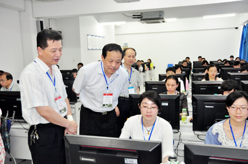 華中師范大學(xué)副校長彭南生、省教育考試院院長劉榮山、副院長黃恩育,省教育廳辦公室主任何愛軍等陪同視察。