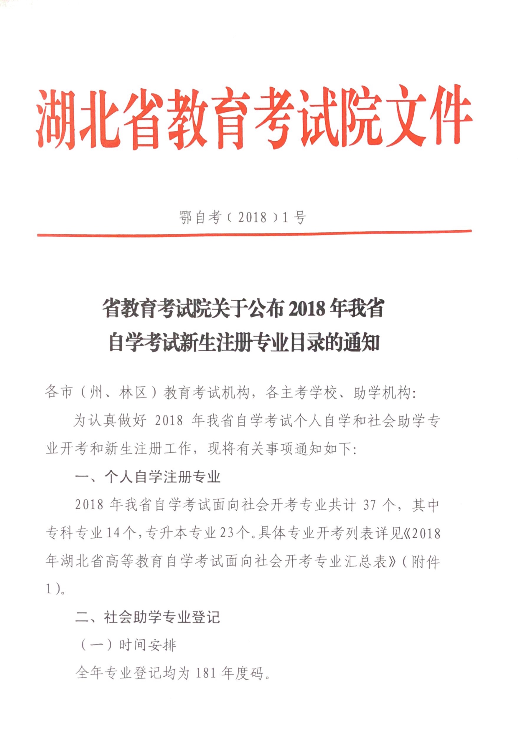 省教育考試院關(guān)于公布2018年我省自學(xué)考試新生注冊(cè)專業(yè)目錄的通知