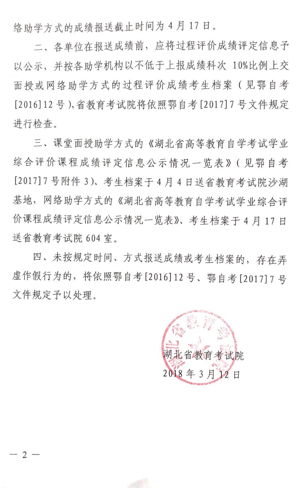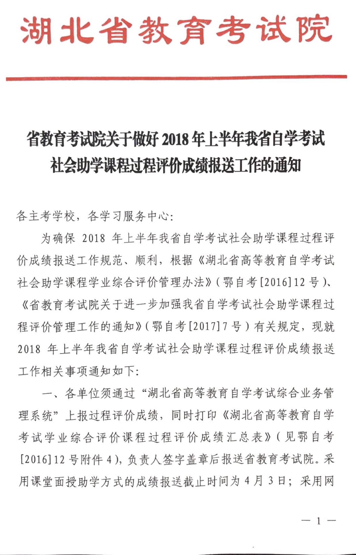 關(guān)于做好2018年上半年我省自學(xué)考試社會助學(xué)課程過程評價成績報送工作的通知