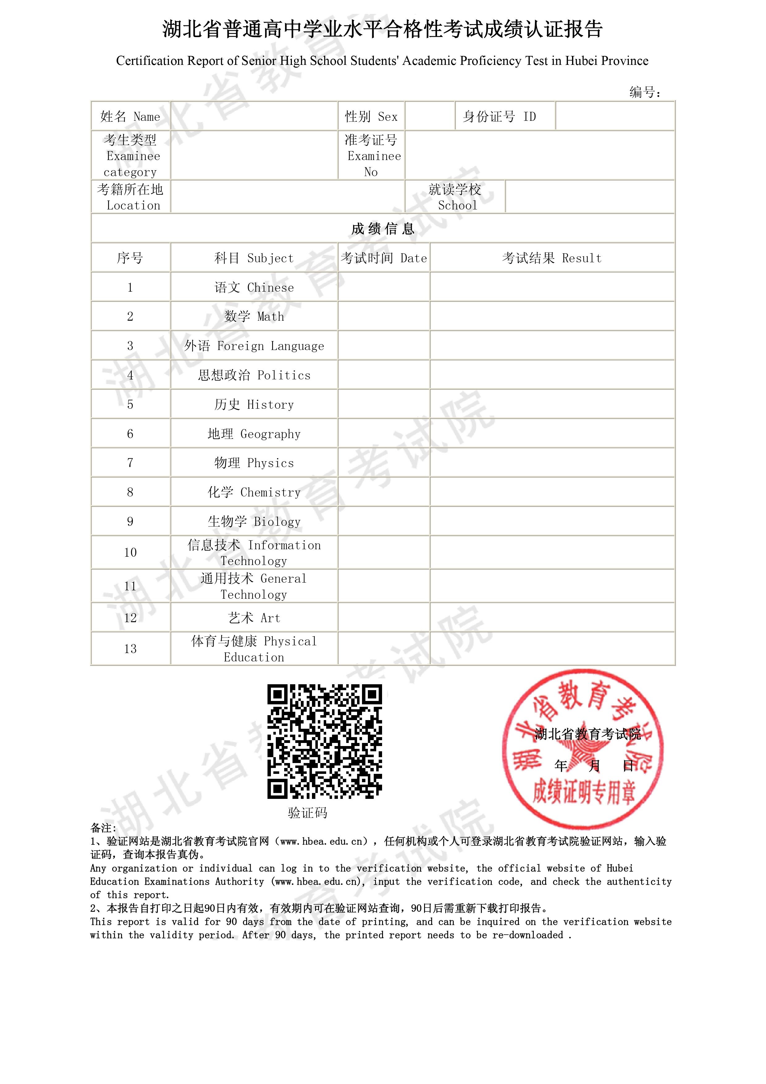 附件:湖北省普通高中學(xué)業(yè)水平合格性考試成績認證報告(樣表)