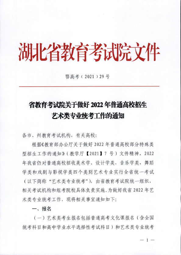 關(guān)于做好 2022 年普通高校招生藝術(shù)類專業(yè)統(tǒng)考工作的通知