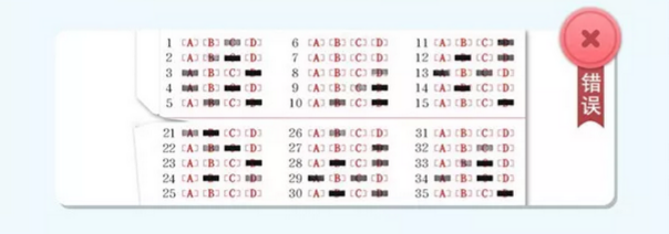 2.選擇題填涂不規(guī)范。主要包括:①填涂過(guò)輕,沒(méi)有涂黑、涂滿。②填涂標(biāo)記不規(guī)范,在選項(xiàng)中涂“點(diǎn)線”“橫線”或打“√”。③填錯(cuò)后修改時(shí)沒(méi)有擦干凈。④使用的2B鉛筆不符合要求,甚至用簽字筆填涂,達(dá)不到掃描要求。