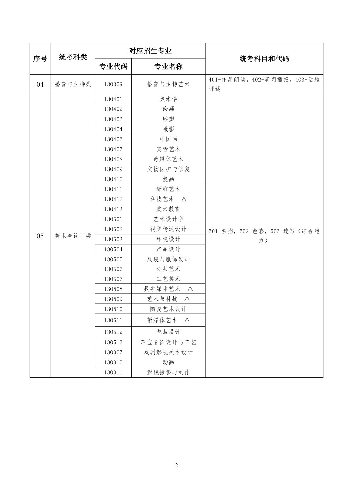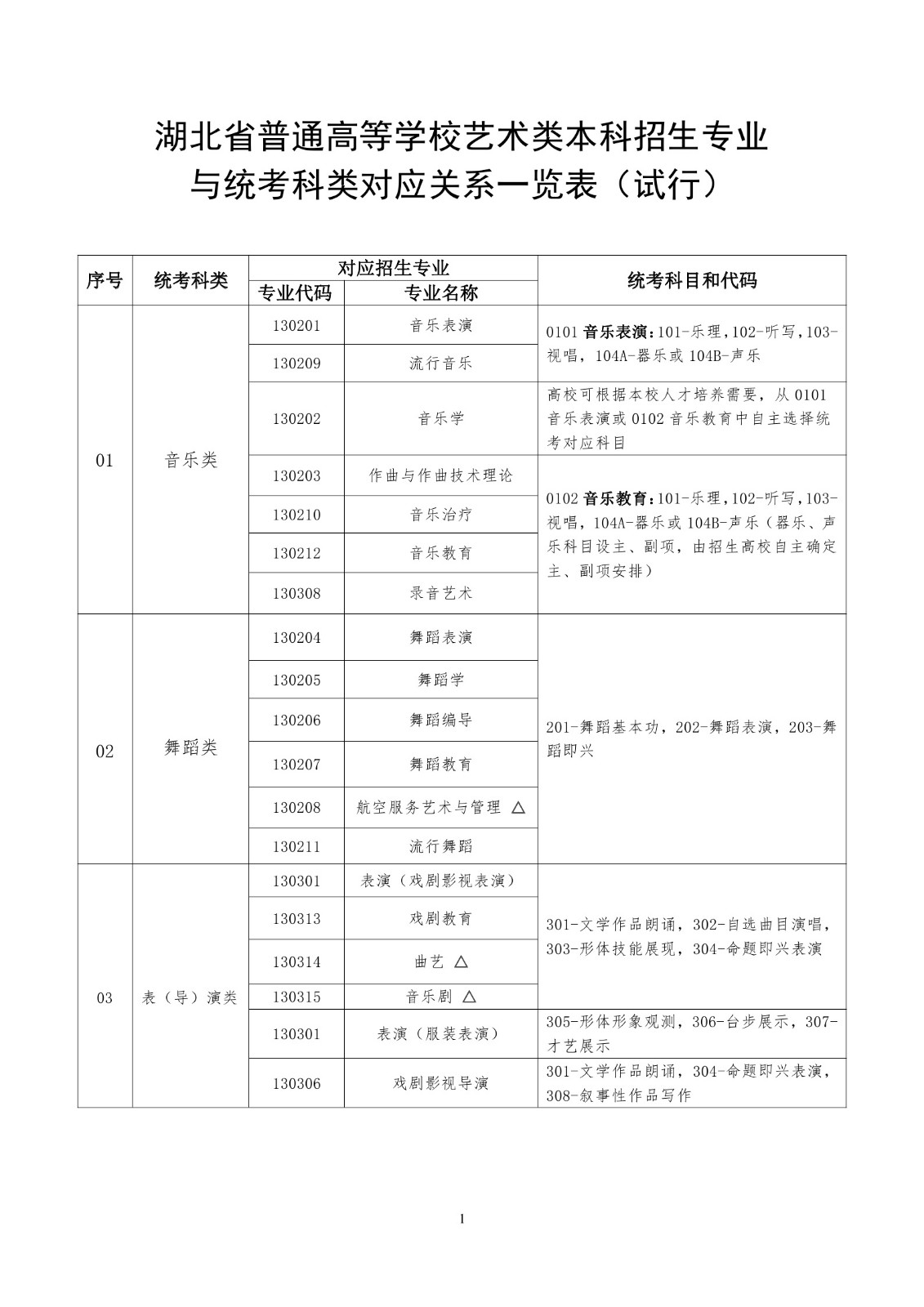 湖北省普通高等學(xué)校藝術(shù)類本科招生專業(yè)與統(tǒng)考科類對應(yīng)關(guān)系一覽表