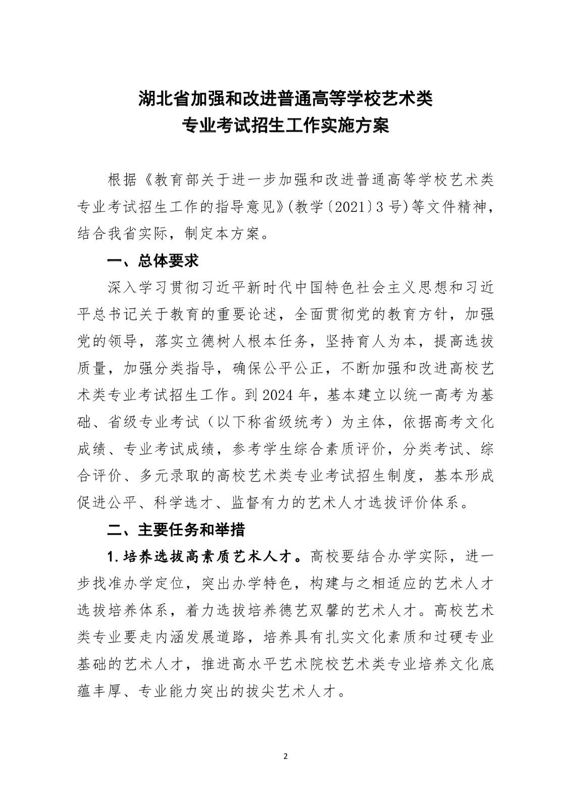 湖北省高等學(xué)校招生委員會(huì)關(guān)于印發(fā)《湖北省加強(qiáng)和改進(jìn)普通高等學(xué)校藝術(shù)類(lèi)專(zhuān)業(yè)考試招生工作實(shí)施方案》的通知