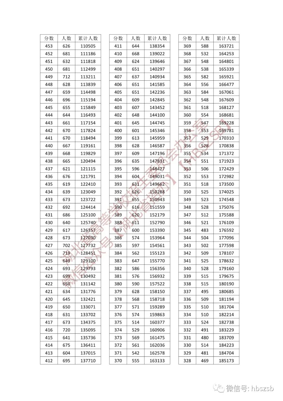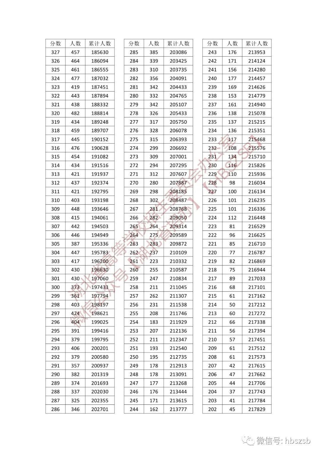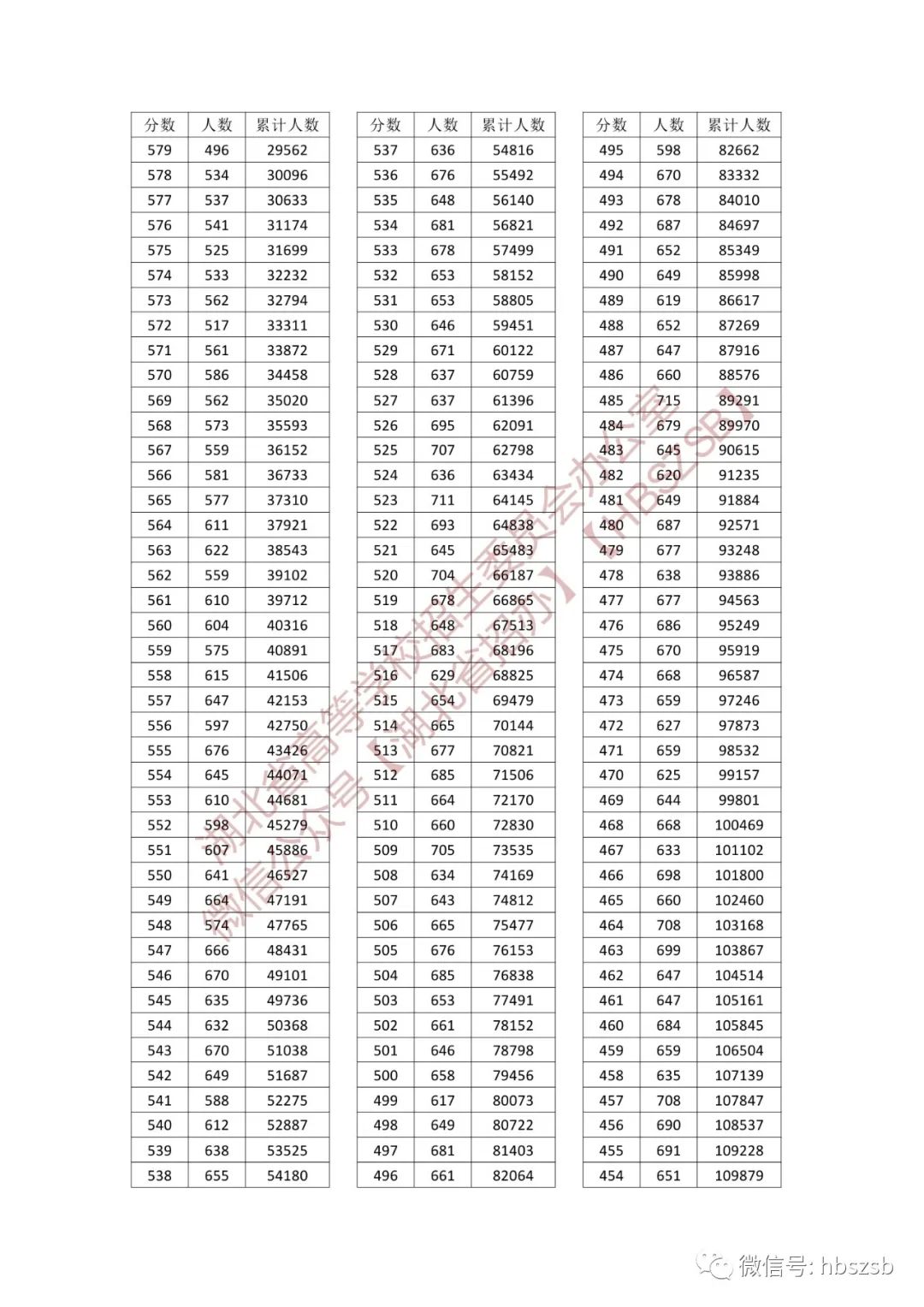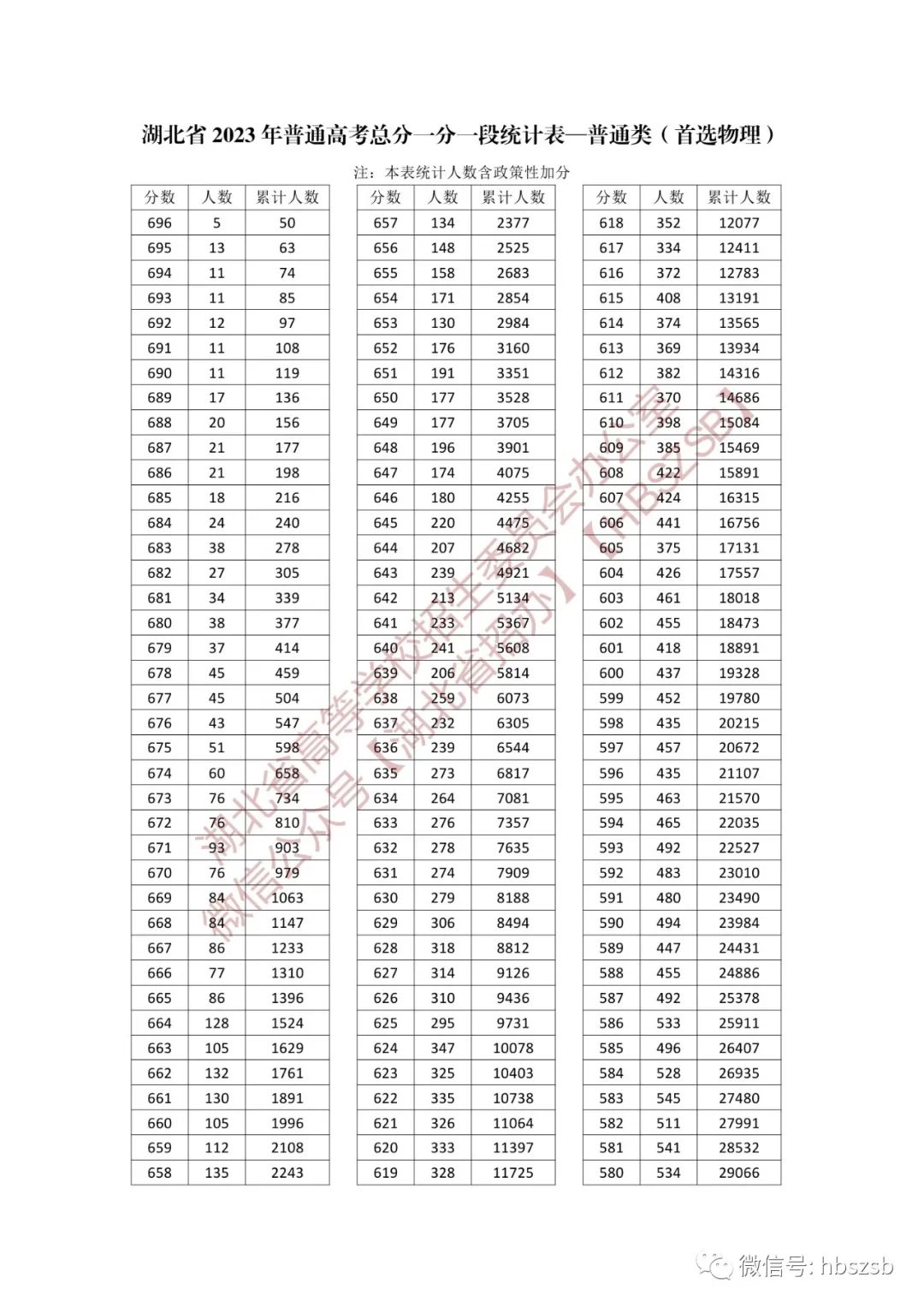 湖北省2023年普通高考總分一分一段統(tǒng)計(jì)表 首選物理