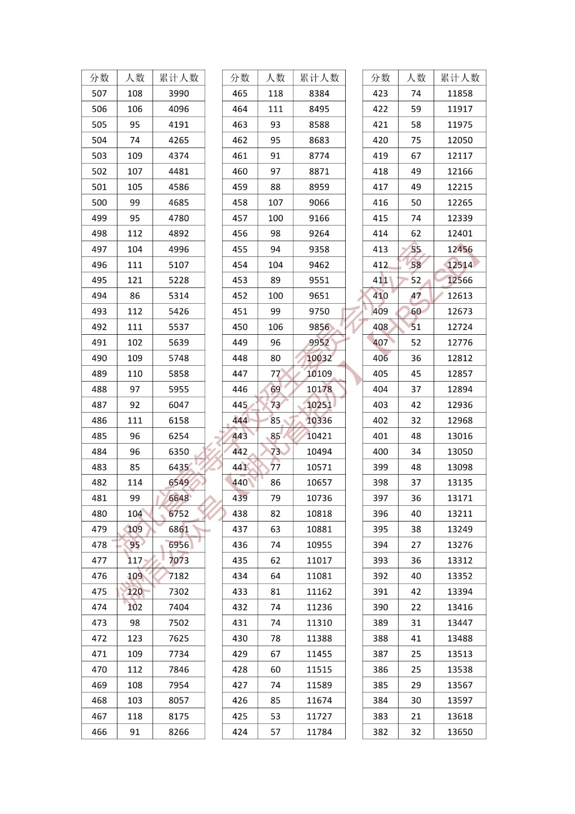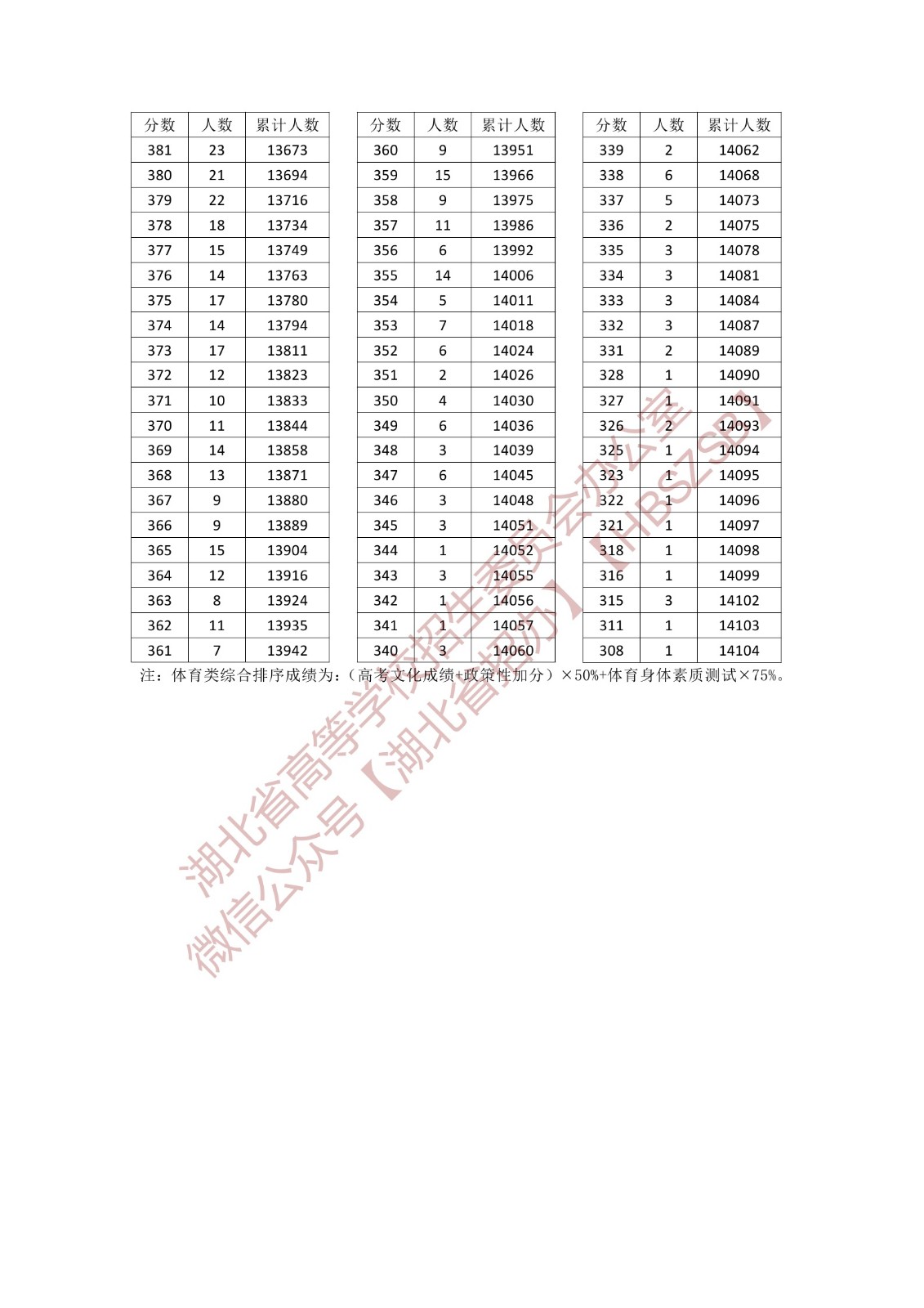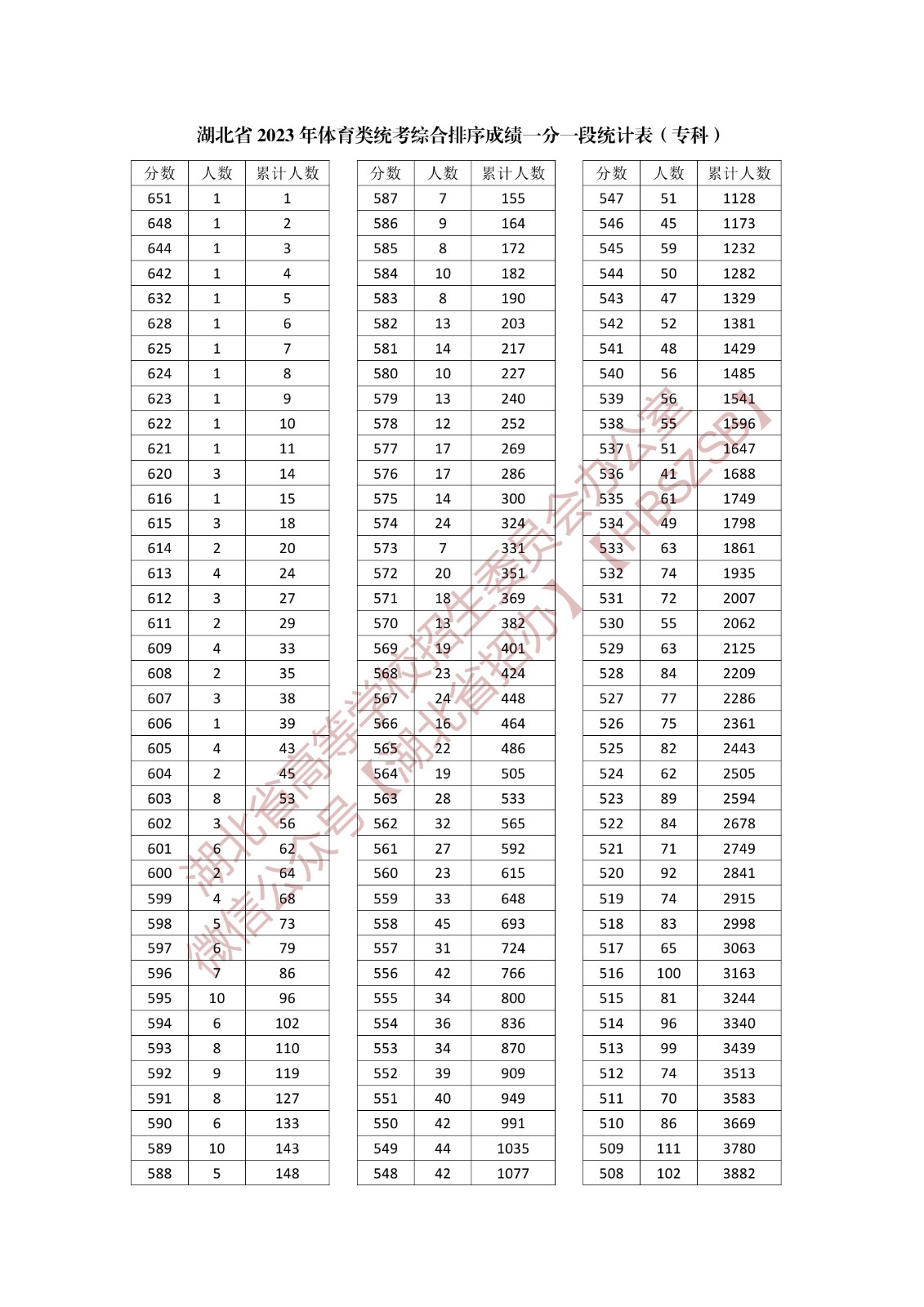 湖北省2023年體育類(lèi)統(tǒng)考綜合排序成績(jī)一分一段統(tǒng)計(jì)表(專(zhuān)科)
