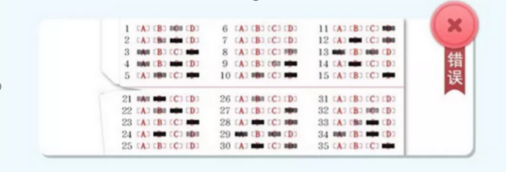 2.選擇題填涂不規(guī)范。主要包括:①填涂過輕,沒有涂黑、涂滿。②填涂標(biāo)記不規(guī)范,在選項(xiàng)中涂“點(diǎn)線”“橫線”或打“√”。③填錯(cuò)后修改時(shí)沒有擦干凈。④使用的2B鉛筆不符合要求,甚至用簽字筆填涂,達(dá)不到掃描要求。