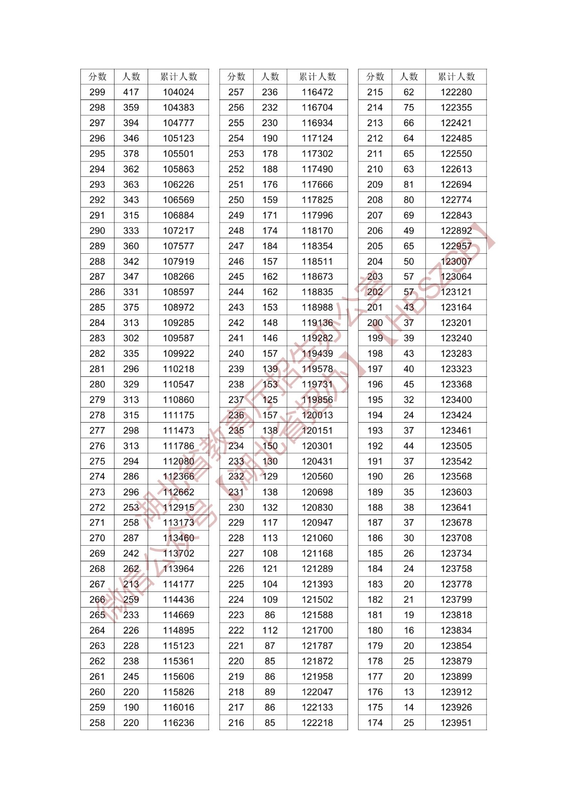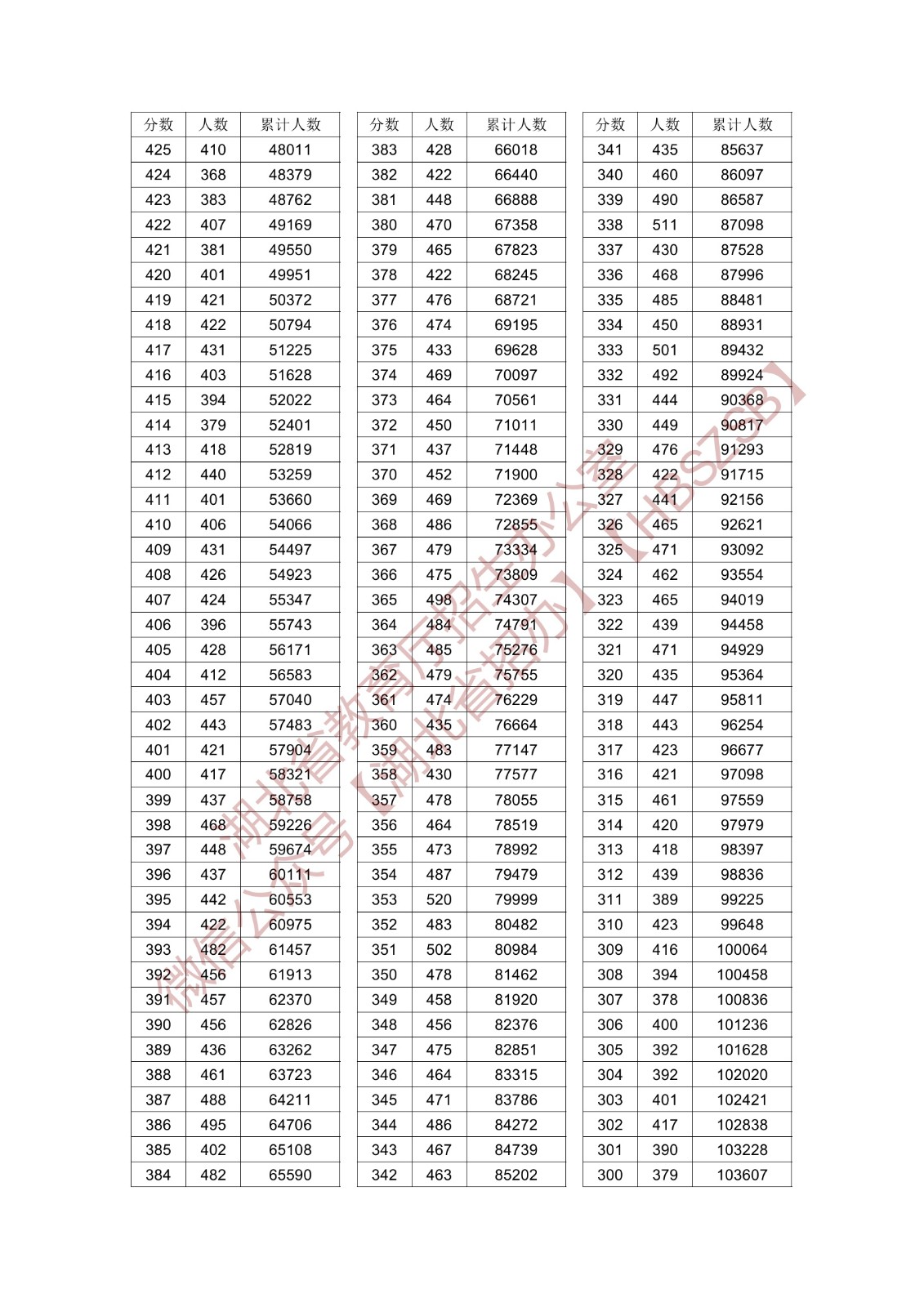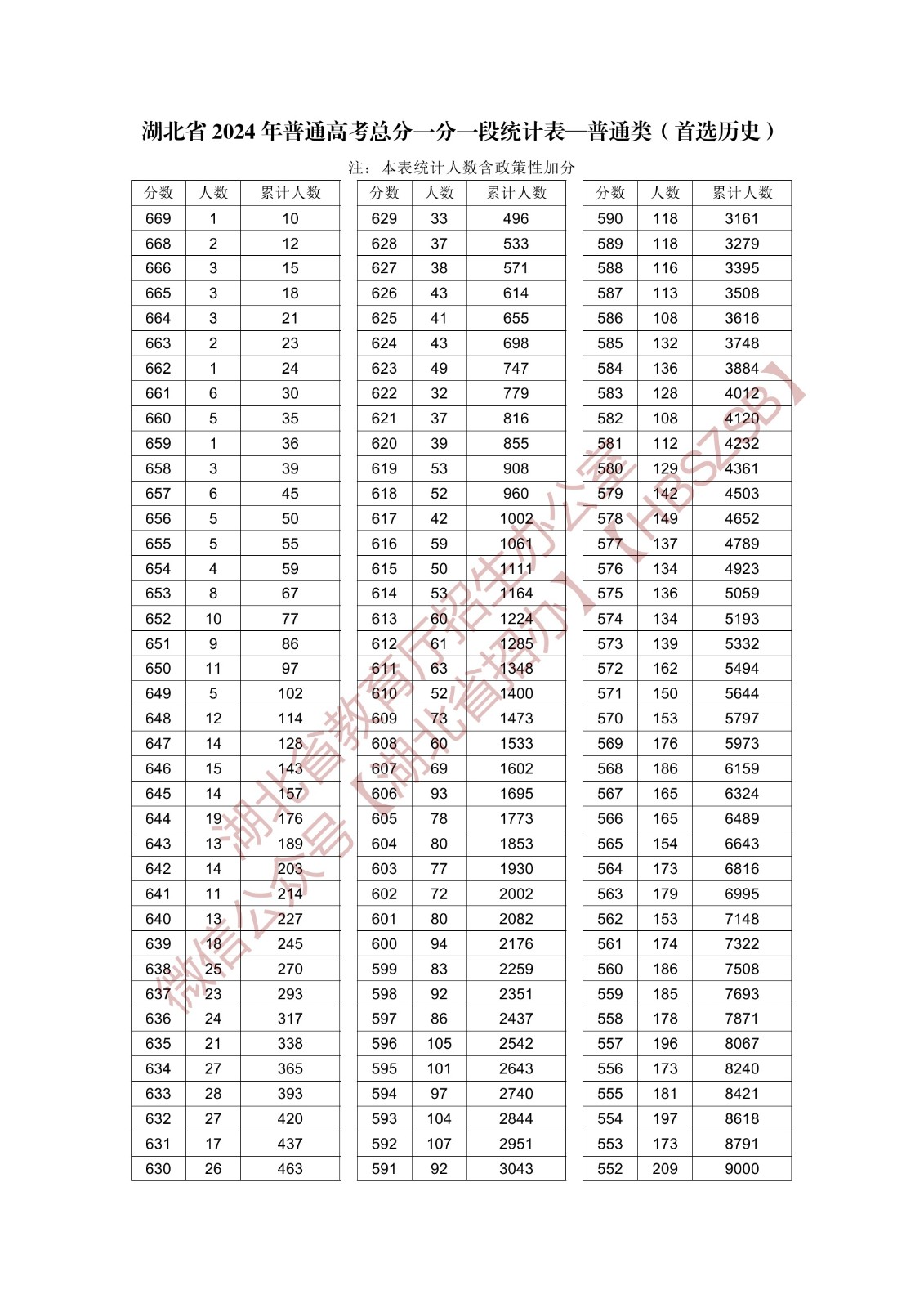 湖北省2024年普通高考總分一分一段統(tǒng)計表—普通類(首選歷史)