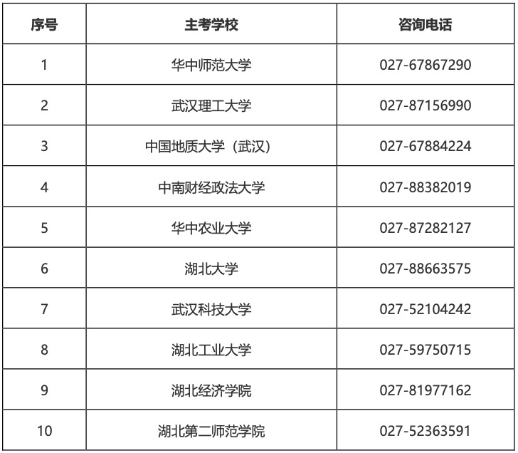 面向社會(huì)開考的主考學(xué)校及咨詢電話如下: