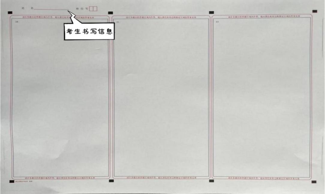 1.考生信息區(qū):①考生書寫信息區(qū)(含由考生本人書寫的姓名、準考證號、考場號、座位號等,正反兩面都有相關信息需要考生填寫);②貼條形碼區(qū);③注意事項(考生必須仔細閱讀其內容);